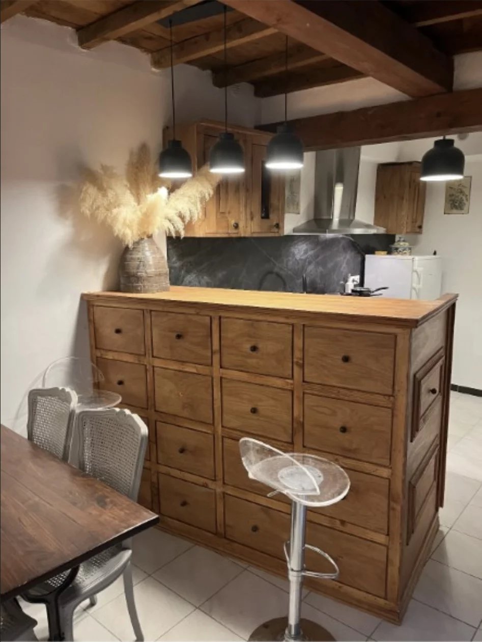 Beaucoup de charme et en cours de finition, il est composé d'une pièce à vivre avec cheminée, d'une cuisine ouverte sur le séjour, d'une chambre, une salle de bain, un wc indépendant et d'une grande cave.